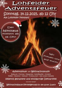 - Lohfelder AdventsfeuerHerzliche Einladung!Wir sind mit einem Getränkewagen dabei!Es gibt bei uns Glühwein und Kaltgetränke! Wir freuen uns auf euer Kommen!